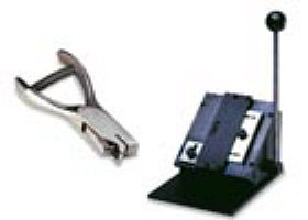 We also carry Eyeletter Machines that quickly punch holes and rivet the eyelets to badges for use with bead chains.